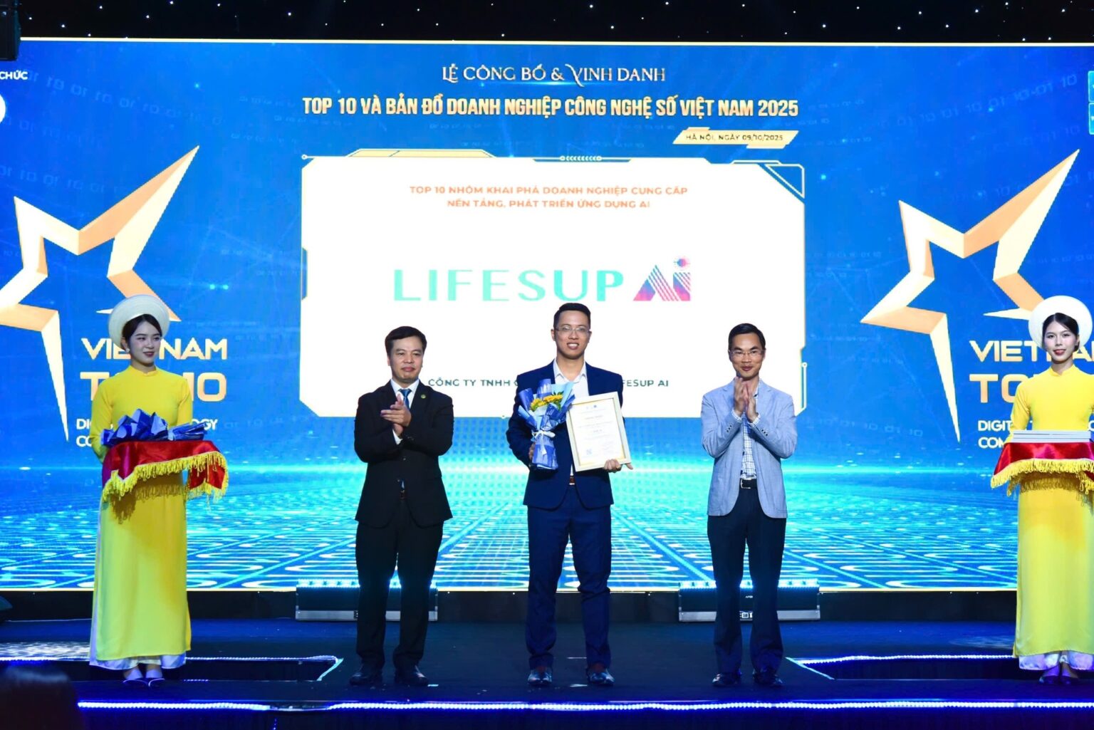 Ngày 09/10/2025, tại lễ vinh danh Top 10 ICT Việt Nam 2025, LIFESUP AI đã xuất sắc ghi danh trong ba hạng mục giải thưởng danh giá, ghi dấu bước tiến vững chắc trên bản đồ công nghệ Việt: