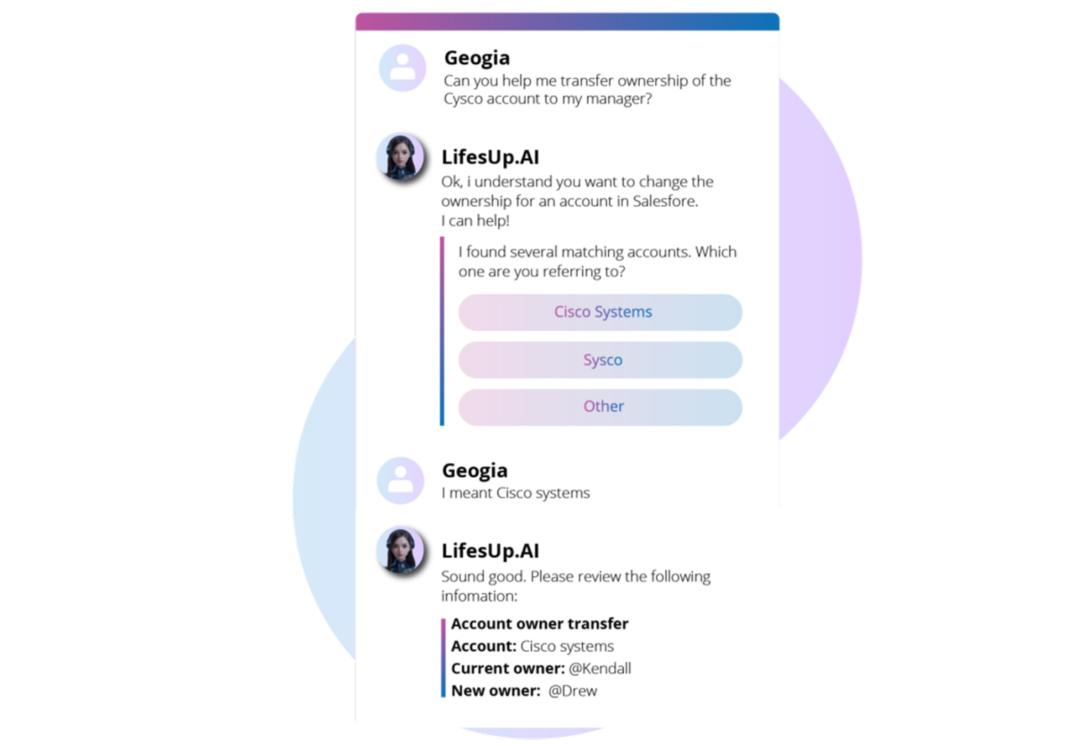 Accurate customer records are essential but tedious to maintain. Give your sales reps an easy way to update info in the CRM whenever changes occur — directly within chat